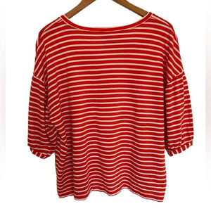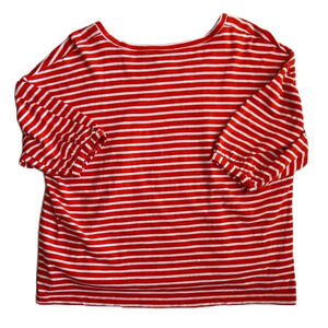 CAbi Women's Orange White Striped Cotton Poolside Tee # 5984 Small
