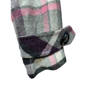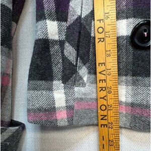 CAbi Womens Plaid Peacoat Jacket Size O Double Breasted Wool Blend Pink/Gray