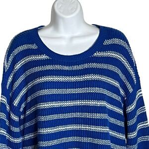 CAbi Womens Pullover Sweater M Blue Striped Oversized Knit Buttons Slouchy 6165