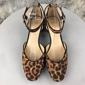 CAbi Women's Size 8M Kiki Brown Leopard Print Ankle Strap Block Heel Sandals