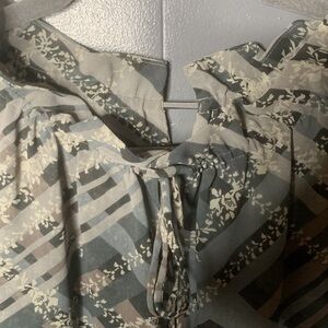 CAbi Women's Graph Trellis Gray Top Blouse Ruffle Neck Sleeveless #3451