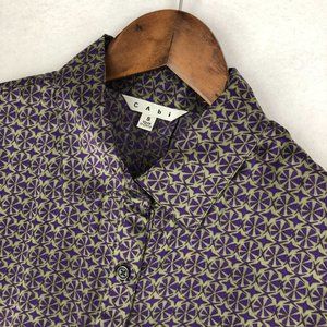 CAbi Women's Size Small #117 Grey Purple Printed 100% Silk Collared Blouse