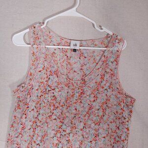 CAbi Womens Small Bella Pink Floral Layered V-Neck Tank Top