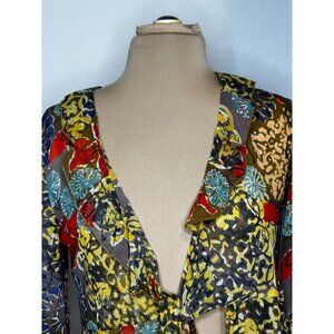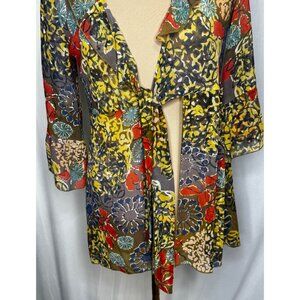 CAbi Womens Small Shakespeare Floral Kimono Cardigan 3/4 Sleeve Sheer Boho 360