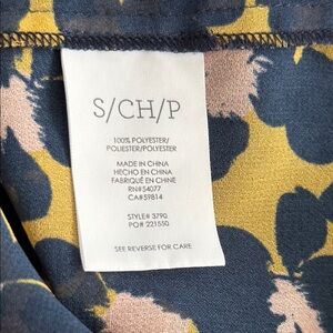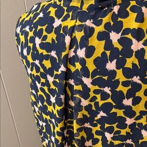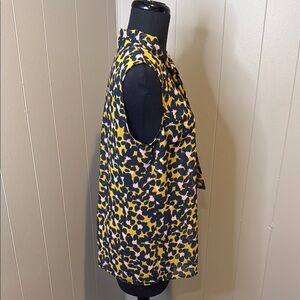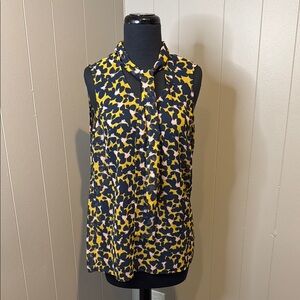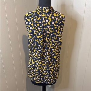CAbi Women’s Small Yellow Pink and Blue Sleeveless Polo Blouse Neck Tie Pleated