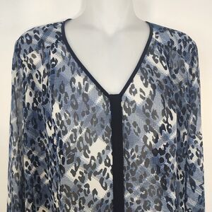 CAbi Women's Top Medium Fatale Blue Black Animal Print Sheer Hidden Buttons 977