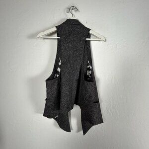 CAbi Womens Tweed Charcoal Gray Racerback Lined Blazer Vest Large Style 247 New