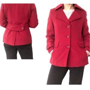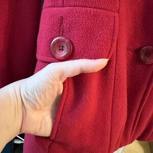 CAbi Wool Blend Coat Red Peacoat Accent Buttons Colorful Lining Size 10