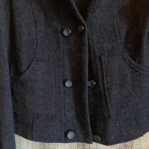 CAbi Wool Jacket Coat Buttons Woman Size Small Black Grey Short Fashion Coat 100% wool Good condition