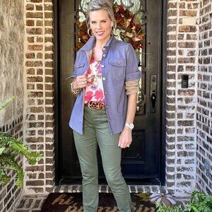 CAbi Workshop Lilic Button Front Shirt Denim Jacket Size Large