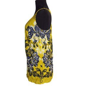 CAbi XS Tank Top Bali Floral Silk Blend Yellow Navy Sleeveless Bold Style 286
