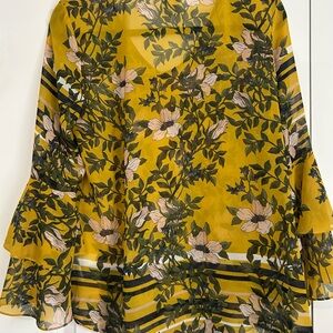 CAbi Yellow Gold Ruffled Bell Sleeve Blouse, CAbi 5518
