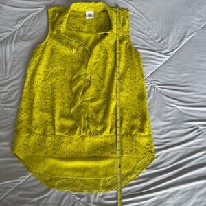CAbi Yellow Sleeveless Tank Blouse with Ruffle Detail Collar and Buttons