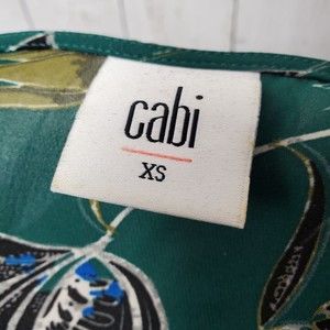 CAbi Zoe Falling Flowers Tank Top Womens Size XS Green Sleeveless Ruffle Hem