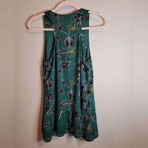 Deep Green with Black floral unique and beautiful color combination! Cabi Zoe Peplum sleeveless racerback tank. Size small, like new.