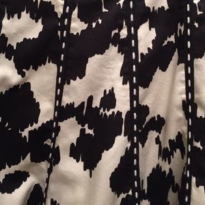 Black and white pattern skirt with lovely pleated details and stitching. 100% cotton and 22 inches from top of waist to hem.