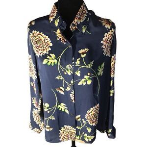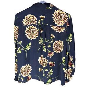 CAbi blue semi sheer floral top long sleeve blouse size Small button down