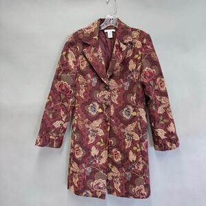 CAbi burgundy Jacobean burgundy floral jacquard tapestry long jacket Size 14