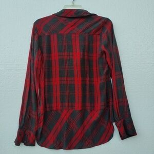 CAbi flannel shirt, Long sleeve high front low back. Red & black.Size XS