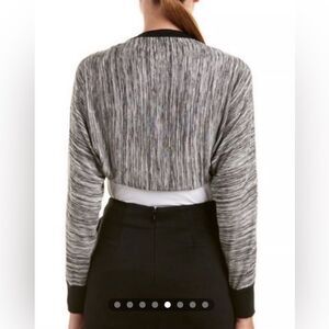 CAbi marled gray black edged horizontal knit shrug & racerback tank set. Medium.