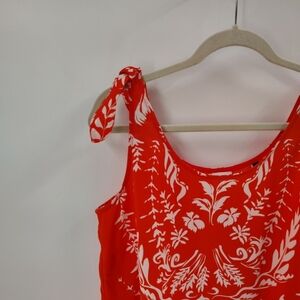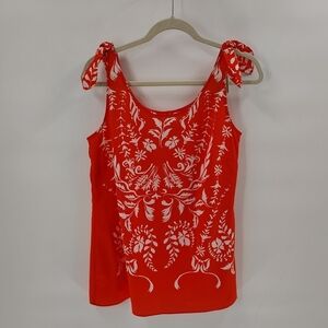 CAbi style 5255Mosaic Print Tie Tank Size Medium Orange With White Floral