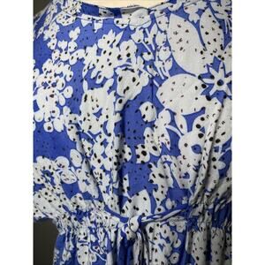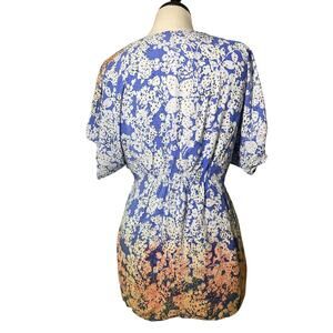 CAbi top sz S v neck TUNIC tie front Dolman sleeves Artsy Floral Boho Style 891