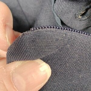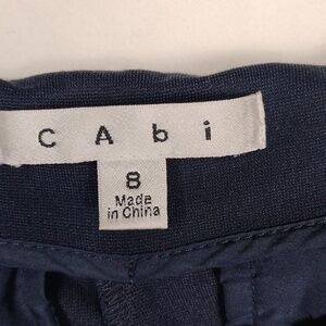CAbi women's slacks size 8. There is a Zipper and a button on the left side, there is a tiny hole near the zipper, there is a snag on the back of the pants on the rear end area and there are faux pockets in the back