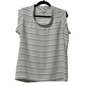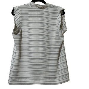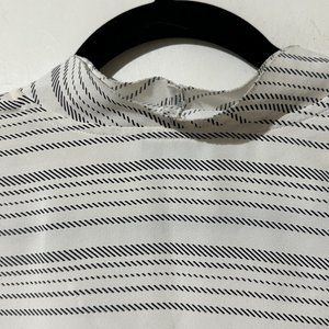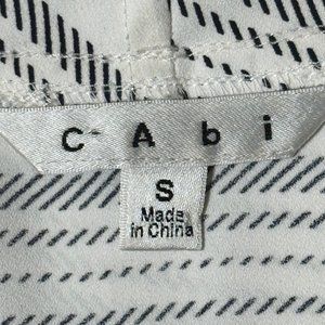 CAbi women’s size S cap sleeve black ivory print flowy double layer collar top