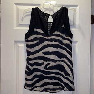 CAbi 5046 Tivoli Zebra Print sleeveless top, size small. 2 snags as pictured. Might be able to be pulled through. They aren’t terribly noticeable.