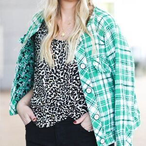 CAbi 5653 Green Library Plaid Tweed Jacket M