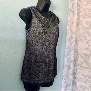 Cute black & white 993 cece tweed sleeveless zipper top. Round neckline. Zip front pockets. Zip up back. Cotton/polyester fabric. In excellent used condition. CAbi Size XS