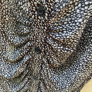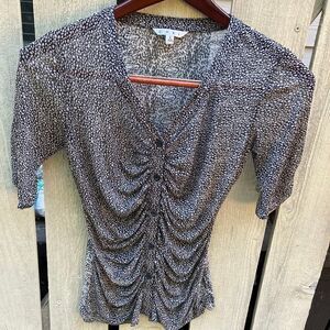 CAbi Animal Print Sheer Button Down Roushing Blouse