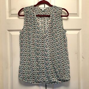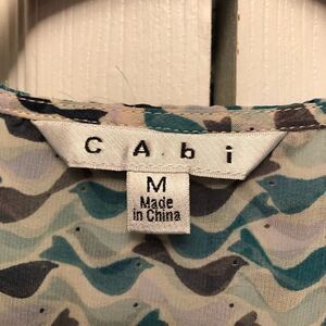 CAbi Bird Print Faux Wrap Top