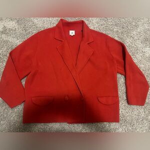 Chic red blazer with a classic design. Features a double-button front and notched lapels. Ideal for elevating any outfit.