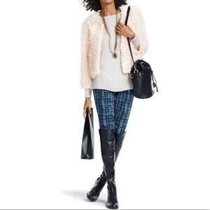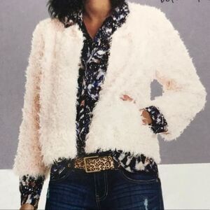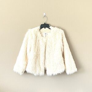 Beautiful ivory faux fur sherpa jacket by CAbi! Size XS. Hook closure on top. With pockets. In great condition! T3