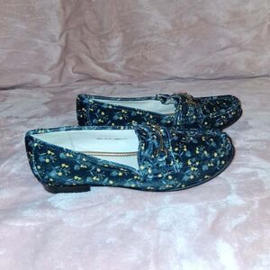 CAbi Floral Blue & Yellow Loafers Size 9M
