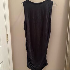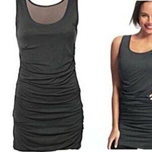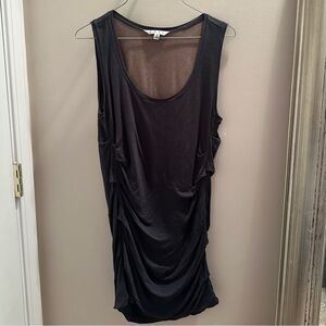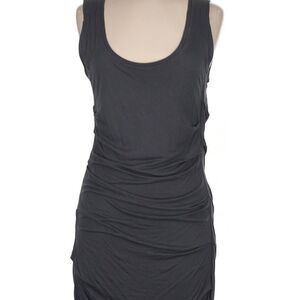 Stylish ruched, body con dress by CAbi in grey. Versatile and chic. Rayon with lining. L 33 1/2” x W 18” put to pit.