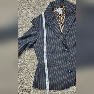 CAbi Joey Black Striped Blazer with Leopard Lining, Size 6, No flaws