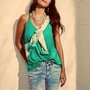 CAbi Kelly Green Racerback Tank Top with back ruffle detail, Adjustable straps, Size medium, style 6111 (II)