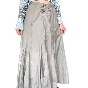 CAbi Light Sage Lace-up Front Maxi Skirt Frayed Distressed Trim Size Small Goth