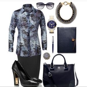 CAbi Python Snake Blue Top Blouse Small snake skin print career