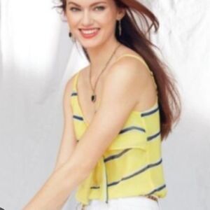 CAbi Rivera Lights Yellow and Navy Striped Camisole.