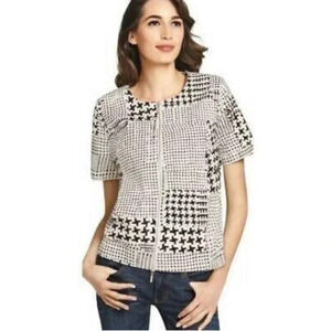 CAbi Short Sleeve Zip Jacket Ivory Black Size Medium. Excellent condition!