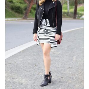 🔴 CAbi Small Grandstand Skirt #5185 Black White & Gray with Pockets