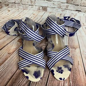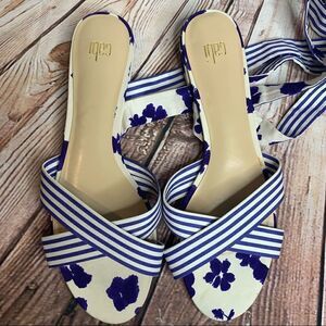 CAbi Tied Up Watercolor Sandals Ankle Wrap Flats. New without box