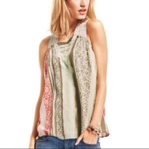 CAbi Whisper Multi-Color Striped Boho Lace Tank