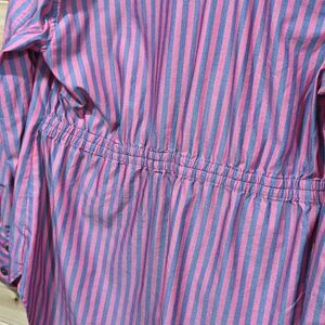 CAbi Womens Top Large Red #6083 Regatta Shacket Gray Striped