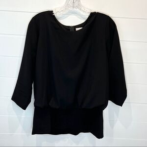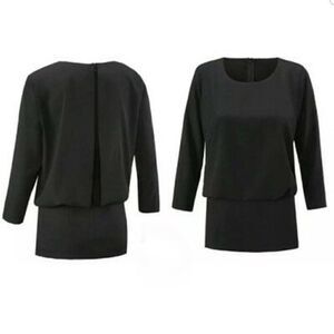 3/4 sleeves, a draped top that is split in the back with zipper closure and stretchy fitted ponte knit