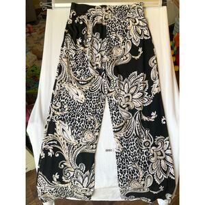 CActive Women Palazzo Pants size 2 Floral Black Mid Rise Stretch Flared Vacay