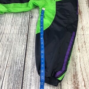 CB Carolina Bay Blue/Fluorescent Green Rain Jacket With Purple Stripes Women’s Size Large